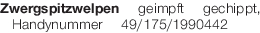 Zwergspitzwelpen geimpft gechippt, Handynummer Tel. 49/175/1990442