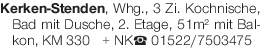 Kerken-Stenden, Whg., 3 Zi. Kochnische, Bad mit Dusche, 2. Etage, 51m² mit Balkon, KM 330€ + NKTel. 01522/7503475Das könnte Sie auch interessieren