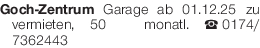 Goch-Zentrum Garage ab 01.12.25 zu vermieten, 50 € monatl. Tel.0174/7362443Das könnte Sie auch interessieren