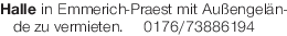 Halle in Emmerich-Praest mit Außengelände zu vermieten. Tel. 0176/73886194Das könnte Sie auch interessieren