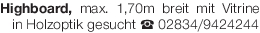 Highboard, max. 1,70m breit mit Vitrine in Holzoptik gesucht Tel. 02834/9424244Das könnte Sie auch interessieren