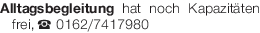 Alltagsbegleitung hat noch Kapazitäten frei, Tel. 0162/7417980