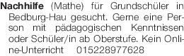 Nachhilfe (Mathe) für Grundschüler in Bedburg-Hau gesucht. Gerne eine Person mit pädagogischen Kenntnissen oder Schüler/in ab Oberstufe. Kein Online-Unterricht Tel. 015228977628Kontakt