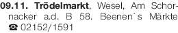 09.11. Trödelmarkt, Wesel, Am Schornacker a.d. B 58. Beenen`s Märkte Tel. 02152/1591Das könnte Sie auch interessieren