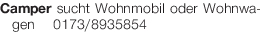 Camper sucht Wohnmobil oder Wohnwagen Tel. 0173/8935854