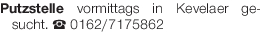 Putzstelle vormittags in Kevelaer gesucht. Tel. 0162/7175862