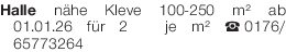 Halle nähe Kleve 100-250 m² ab 01.01.26 für 2 € je m² Tel. 0176/65773264Das könnte Sie auch interessieren