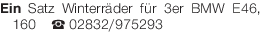 Ein Satz Winterräder für 3er BMW E46, 160 € Tel. 02832/975293