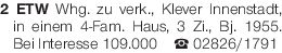 2 ETW Whg. zu verk., Klever Innenstadt, in einem 4-Fam. Haus, 3 Zi., Bj. 1955. Bei Interesse 109.000 € Tel. 02826/1791Das könnte Sie auch interessieren