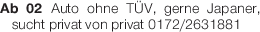 Ab 02 Auto ohne TÜV, gerne Japaner, sucht privat von privat 0172/2631881Das könnte Sie auch interessieren