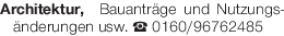 Architektur, Bauanträge und Nutzungsänderungen usw. Tel. 0160/96762485Das könnte Sie auch interessieren