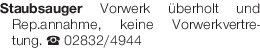 Staubsauger Vorwerk überholt und Rep.annahme, keine Vorwerkvertretung. Tel. 02832/4944Das könnte Sie auch interessieren