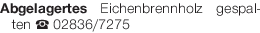 Abgelagertes Eichenbrennholz gespalten Tel. 02836/7275