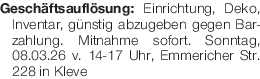 Geschäftsauflösung: Einrichtung, Deko, Inventar, günstig abzugeben gegen Barzahlung. Mitnahme sofort. Sonntag, 08.03.26 v. 14-17 Uhr, Emmericher Str. 228 in KleveDas könnte Sie auch interessieren
