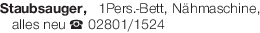 Staubsauger, 1Pers.-Bett, Nähmaschine, alles neu Tel. 02801/1524