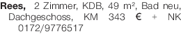 Rees, 2 Zimmer, KDB, 49 m², Bad neu, Dachgeschoss, KM 343 € + NK Tel. 0172/9776517Das könnte Sie auch interessieren