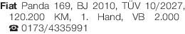 Fiat Panda 169, BJ 2010, TÜV 10/2027, 120.200 KM, 1. Hand, VB 2.000€ Tel. 0173/4335991Das könnte Sie auch interessieren