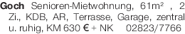 Goch Senioren-Mietwohnung, 61m² , 2 Zi., KDB, AR, Terrasse, Garage, zentral u. ruhig, KM 630 € + NK Tel. 02823/7766Das könnte Sie auch interessieren