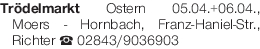 Trödelmarkt Ostern 05.04.+06.04., Moers - Hornbach, Franz-Haniel-Str., Richter Tel.02843/9036903Das könnte Sie auch interessieren