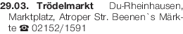 29.03. Trödelmarkt Du-Rheinhausen, Marktplatz, Atroper Str. Beenen`s Märkte Tel. 02152/1591Das könnte Sie auch interessieren