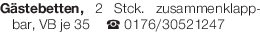Gästebetten, 2 Stck. zusammenklappbar, VB je 35 € Tel. 0176/30521247