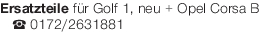 Ersatzteile für Golf 1, neu + Opel Corsa B Tel. 0172/2631881