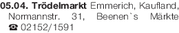 05.04. Trödelmarkt Emmerich, Kaufland, Normannstr. 31, Beenen`s Märkte Tel. 02152/1591Das könnte Sie auch interessieren