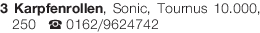 3 Karpfenrollen, Sonic, Tournus 10.000, 250€ Tel. 0162/9624742