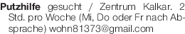 Putzhilfe gesucht / Zentrum Kalkar. 2 Std. pro Woche (Mi, Do oder Fr nach Absprache) wohn81373@gmail.comDas könnte Sie auch interessieren