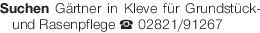Suchen Gärtner in Kleve für Grundstück- und Rasenpflege Tel. 02821/91267Das könnte Sie auch interessieren